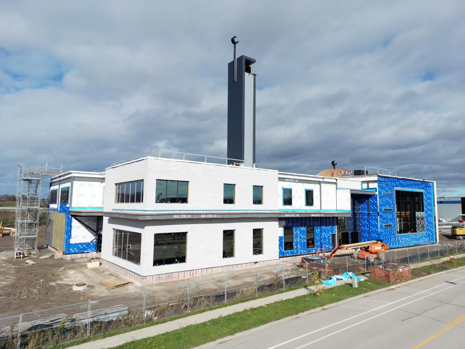 Alhamdolelah the minaret is completed, the roof work is 90% complete and the windows are at 70% complete. The brick work is completed and exterior cladding is ongoing. The parking lot grading has started.